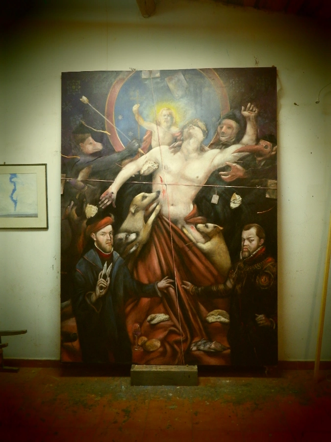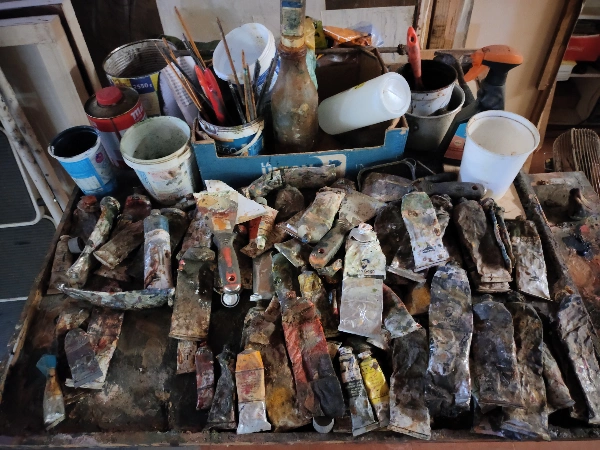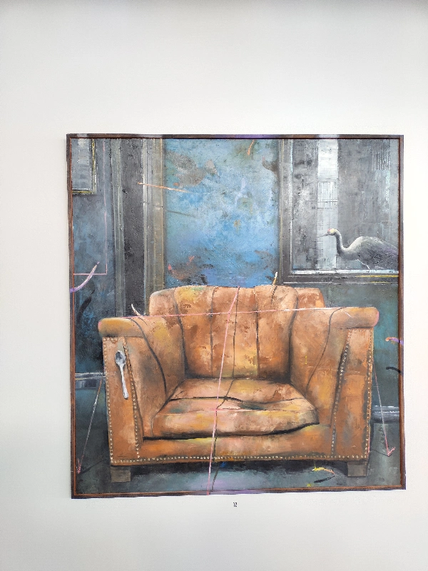 Paintings: Old Painters Chair With Stork; Yellow Chair with Stork; Old Man’s with Stork.